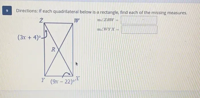 Measure the missing angles and sides of each triangle in 3(a) to (c) on the previous page. xtwo pair of congruent adjacent sides xopposite sides that are not congruent x40 ft of rope remaining x20 ft for each side. If you have a parallelogram or rhombus, the opposite angles are the same and the consecutive angles. It would be a concave quadrilateral the link below has some pics. Find the angle measures x, y and z.